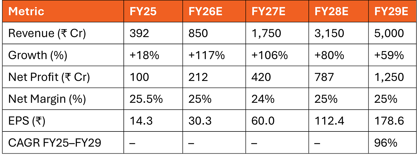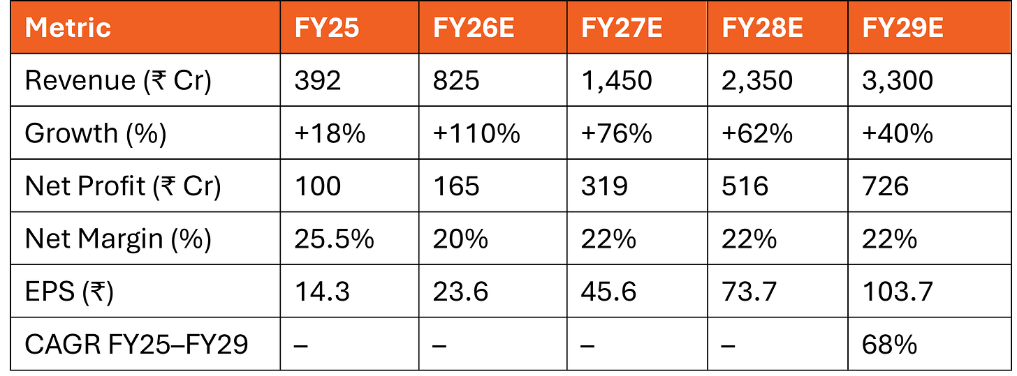 FY26 Guidance Achievement: ₹800–850 crores topline (vs. ₹392 Cr in FY25) = 2.1–2.2x YoY growth