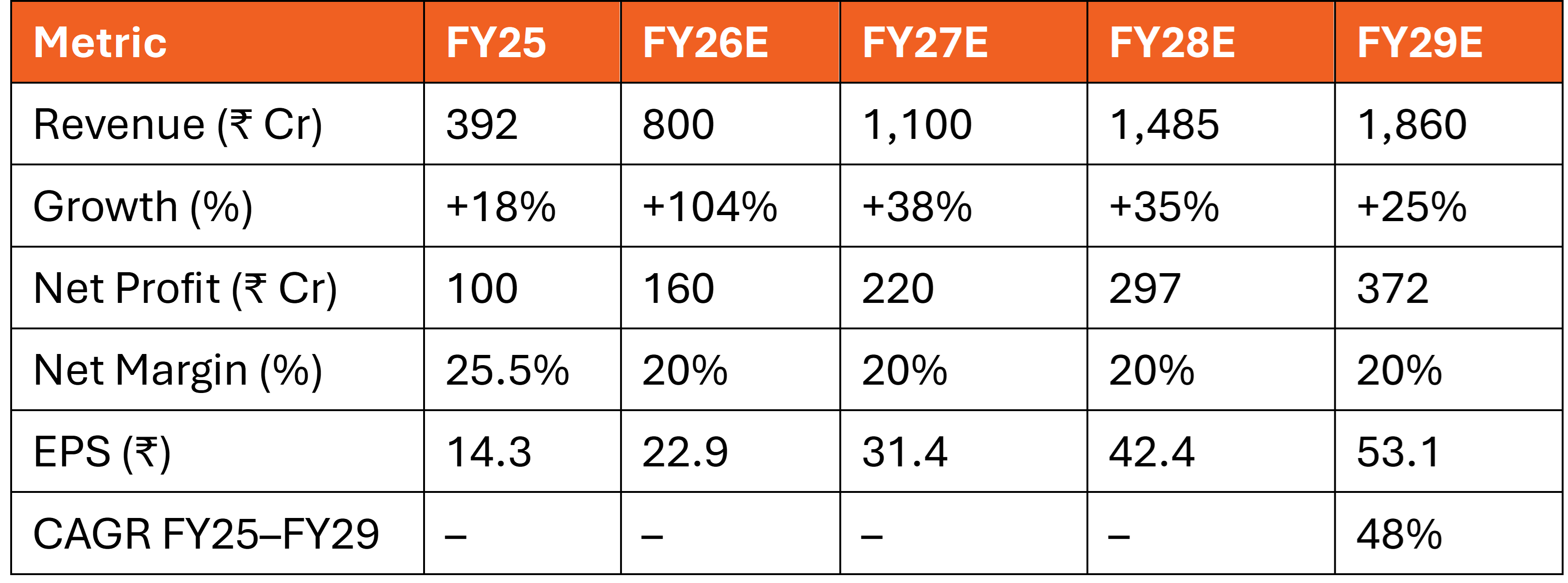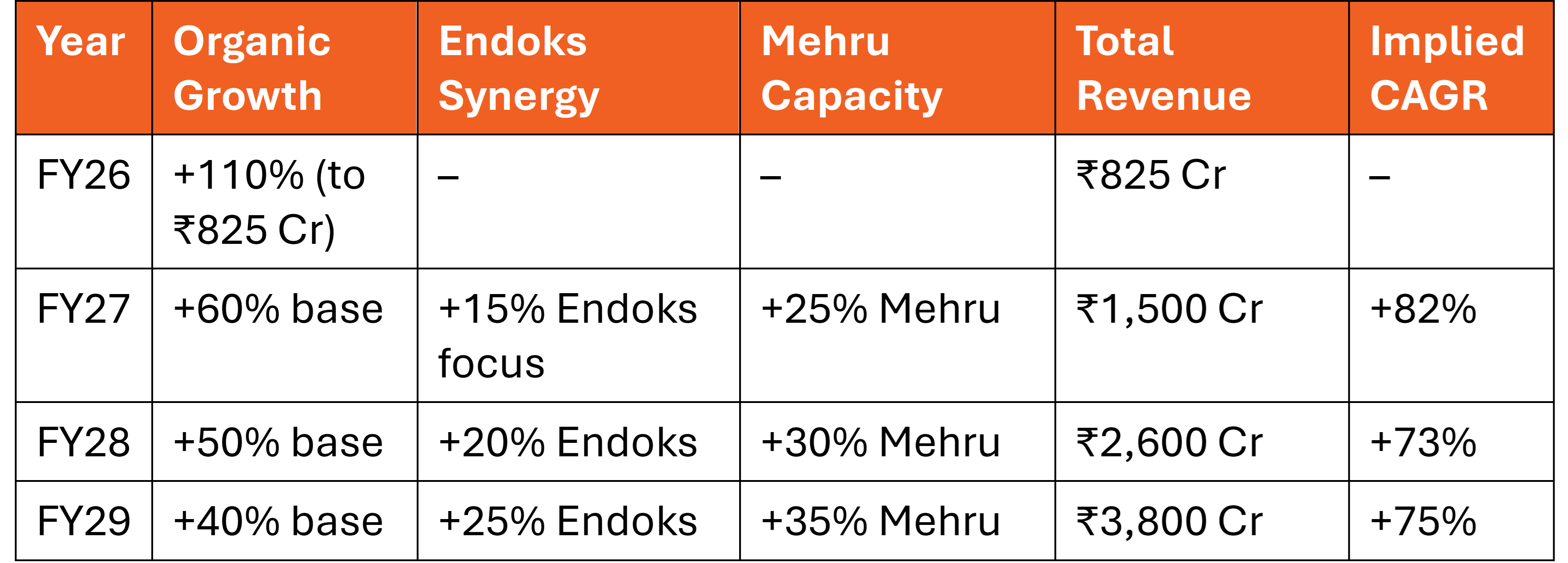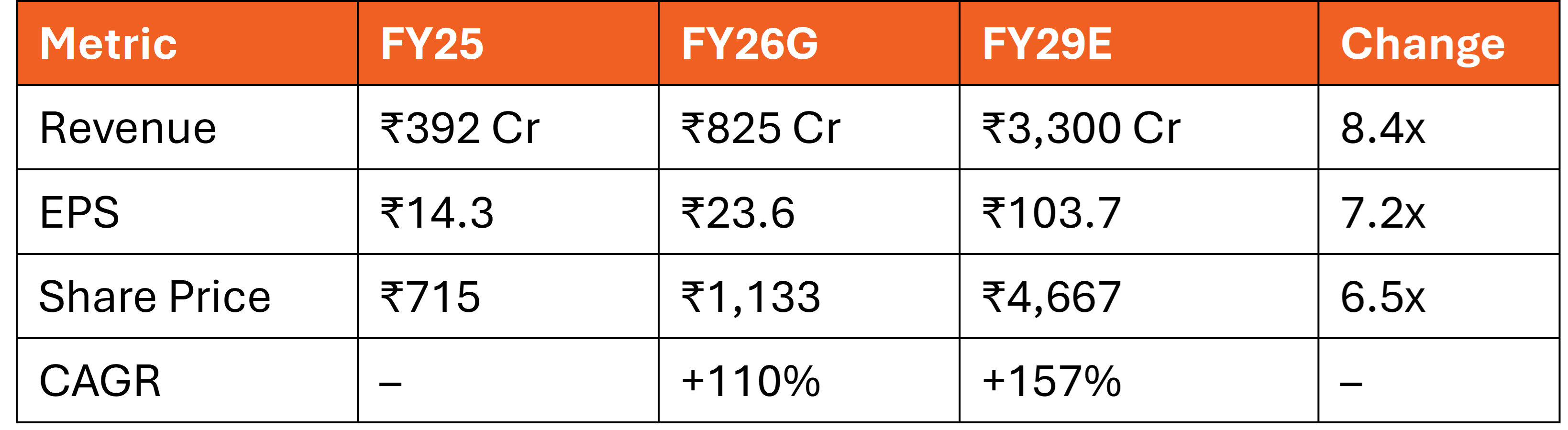 Valuation: Base Case Target ₹3,930–₹5,005/share by FY29 = 5–6.7x returns