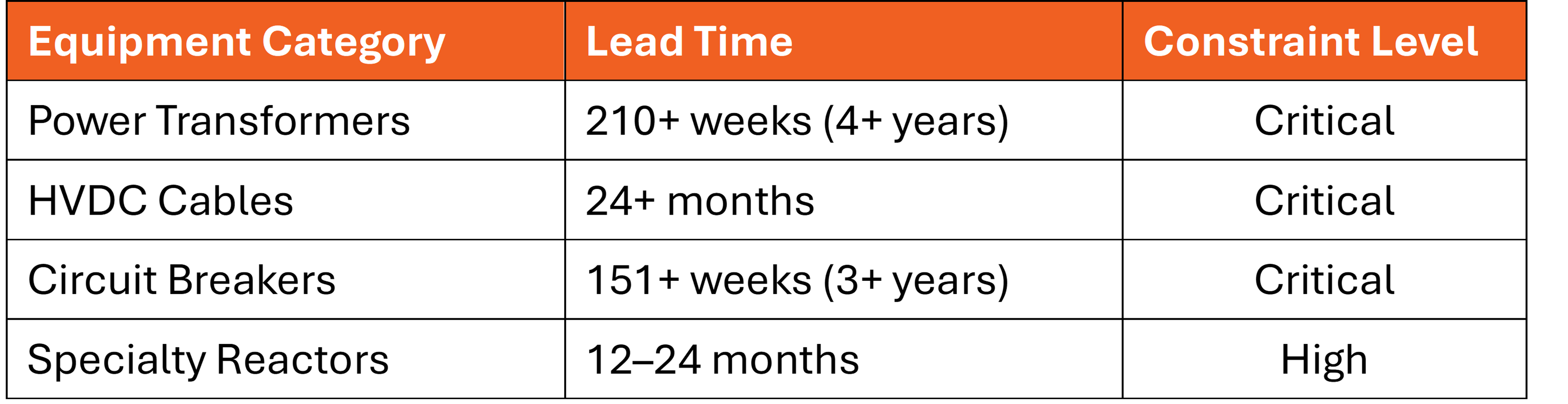 HVDC/FACTS Supply Bottleneck: Industry-wide capacity shortage (2–4 year lead times)