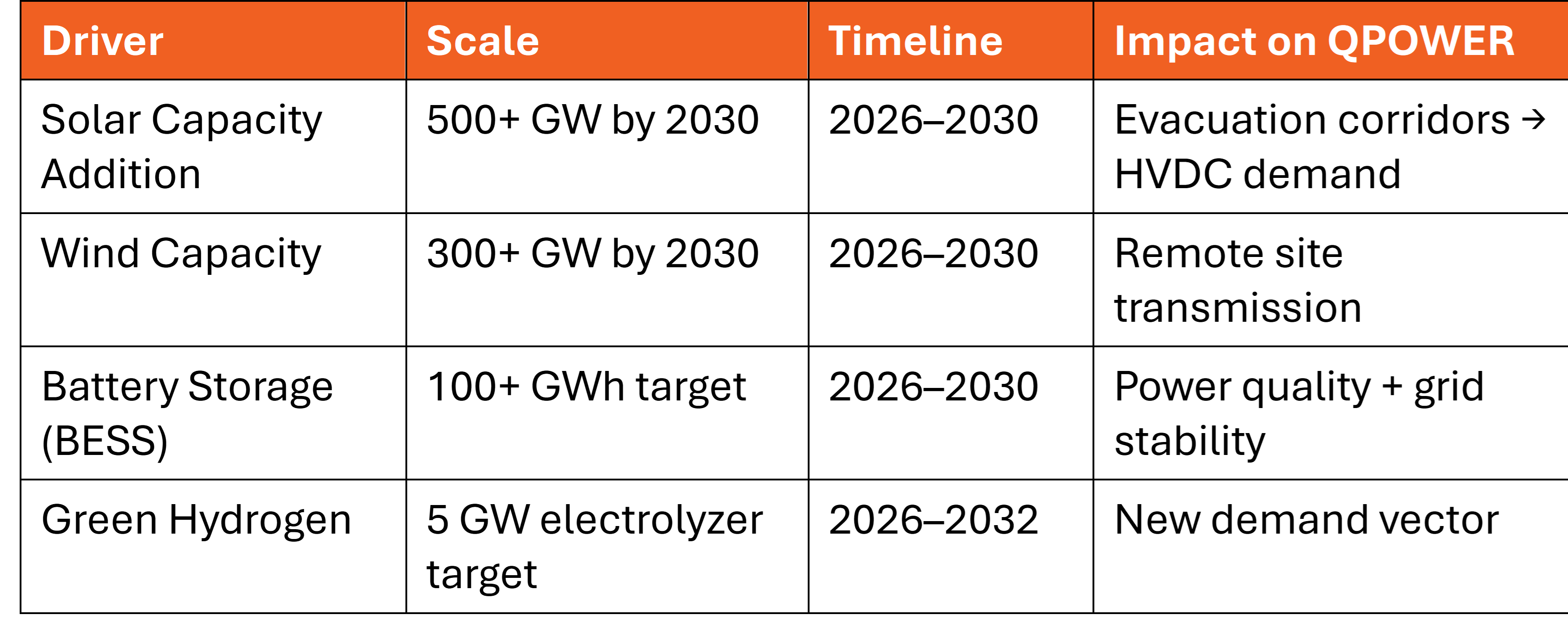 1. Structural tailwinds: AI (3–6x power growth), renewables (500+ GW additions), green hydrogen (5 GW target)